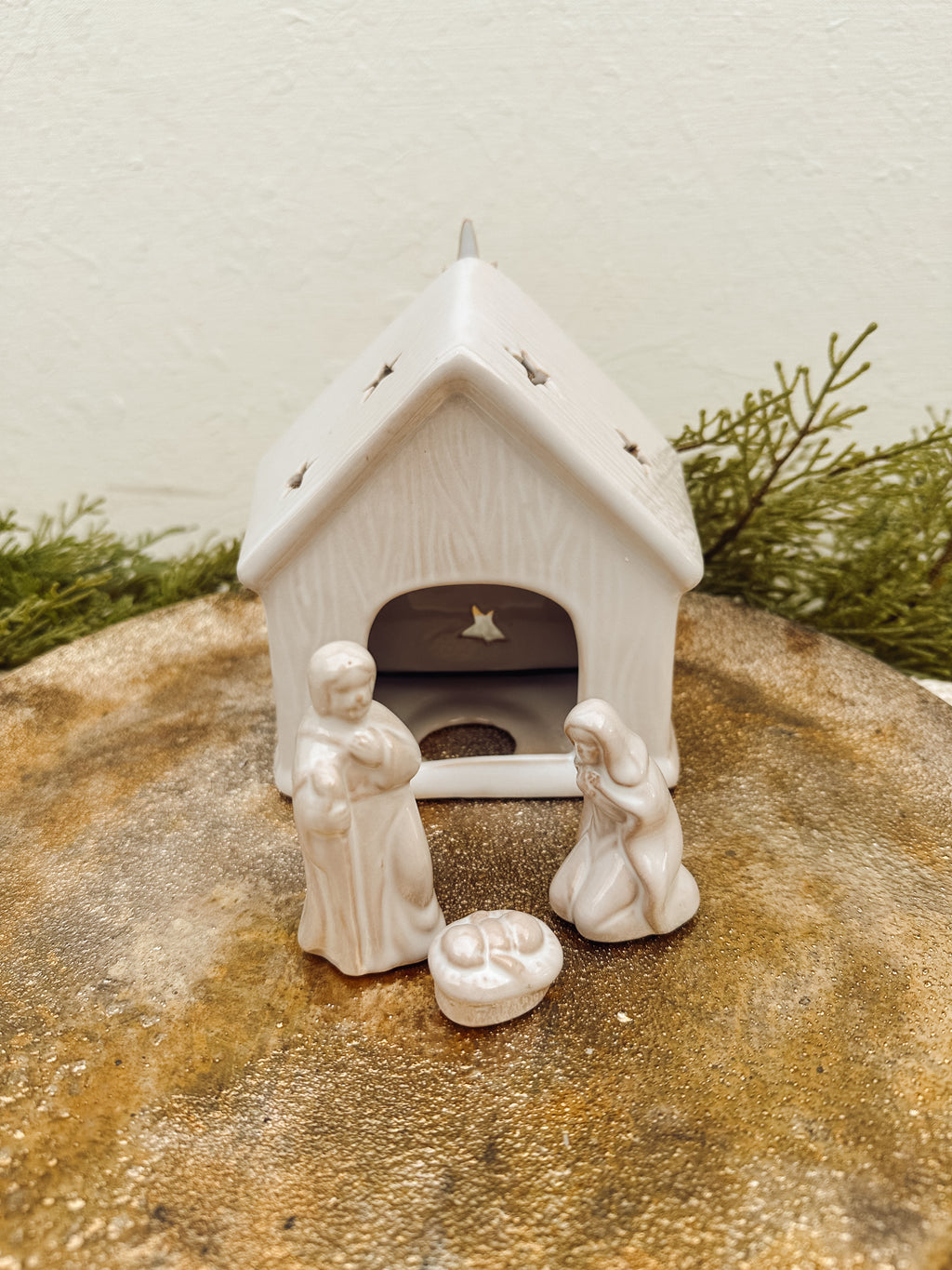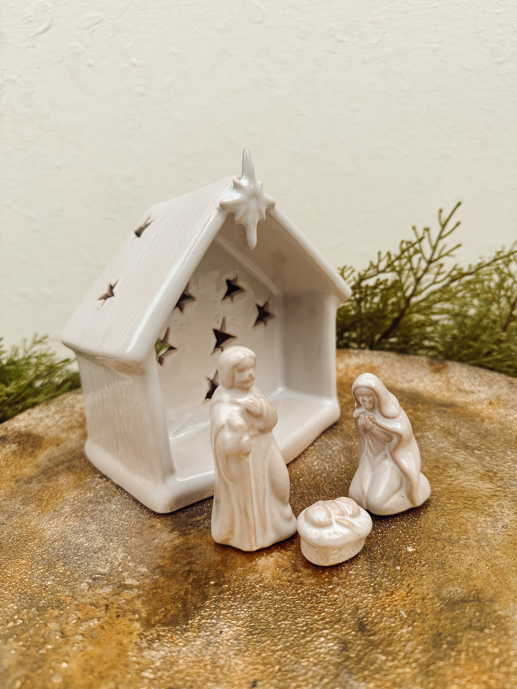 Stoneware Holy Family Tealight Holder with Star Cut out