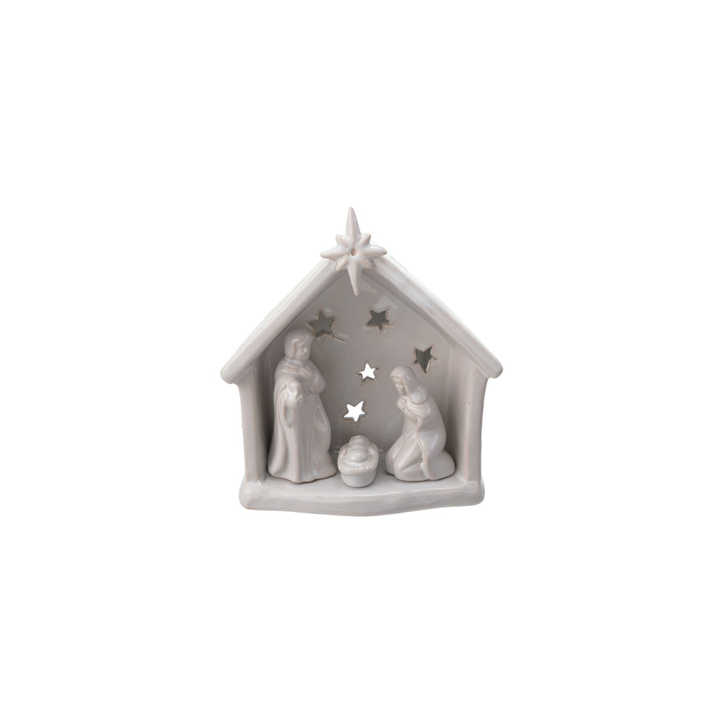 Stoneware Holy Family Tealight Holder with Star Cut-Outs
